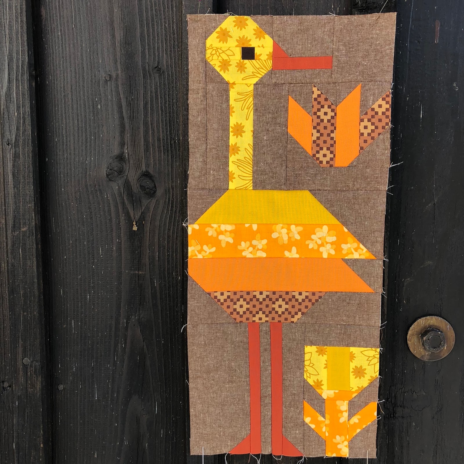 Ich habe einfach ein bisschen in meinen Stoffkisten gewühlt und mich dann für die Farbkombination Orange und Pink entschieden. Der erste Block ging gut zu nähen und weil ich im Januar eh in die Schweiz gefahren bin, habe ich den Block kurzerhand eingepackt, um ein Foto in "heimischer" Umgebung zu machen: